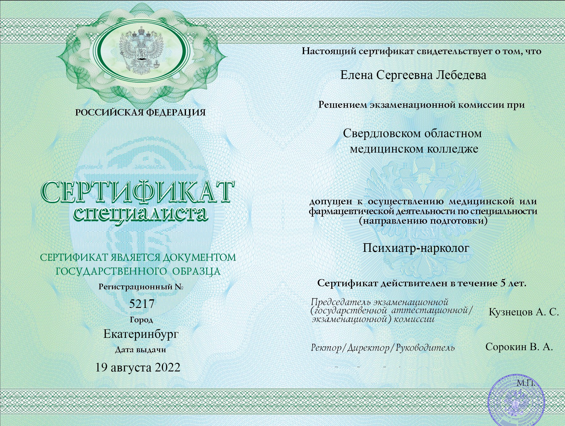 Елена Сергеевна Лебедева врач нарколог клиники доктора Стукаловой в Понизовке